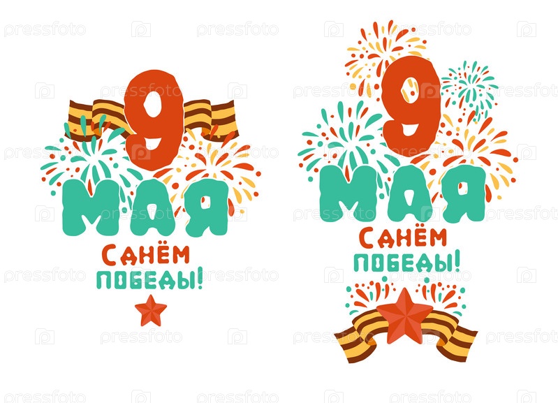 День Победы! Векторная иллюстрация. Русский праздник, рукописные надписи. Векторный дизайн типографии ко Дню Победы для поздравительных открыток и плакатов