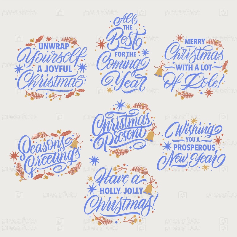 Новогодние и рождественские фразы. Векторный набор надписей на Рождество. Дизайн плаката, поздравительной открытки, приглашения на вечеринку. Векторная иллюстрация