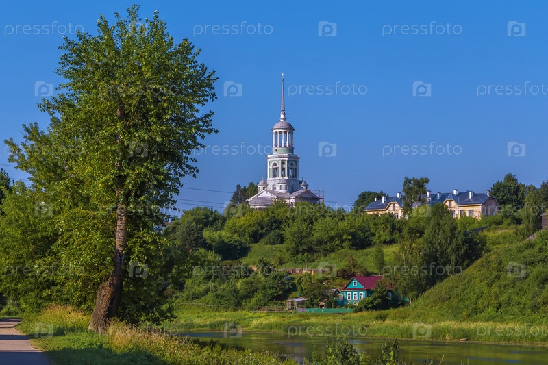Вид надвратной церкви Борисоглебского монастыря, Торжок, Россия