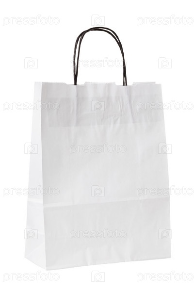 Белый бумажный пакет с ручками на белом фоне