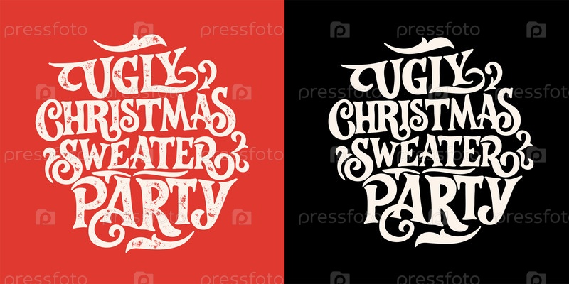 Ugly Christmas Sweater Party - векторный текст рождественских развлечений. Дизайн плаката, поздравительной открытки, приглашения на вечеринку. Векторная иллюстрация