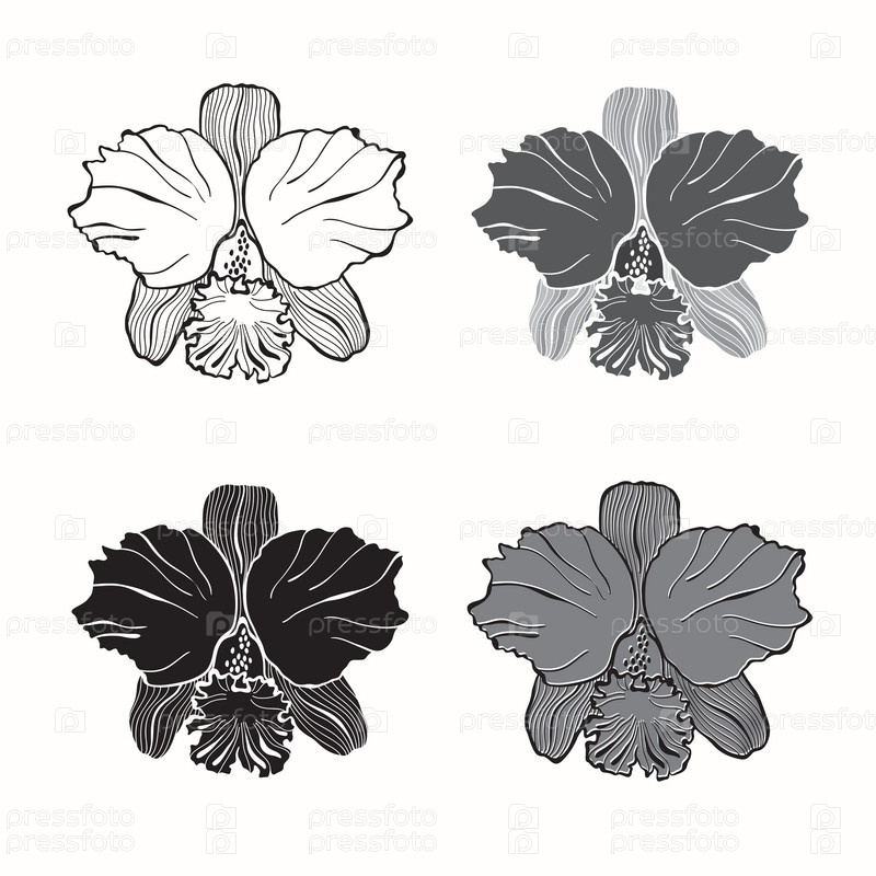 Векторный набор орхидей, изолированные на белом фоне. Монохромная иллюстрация, элементы дизайна