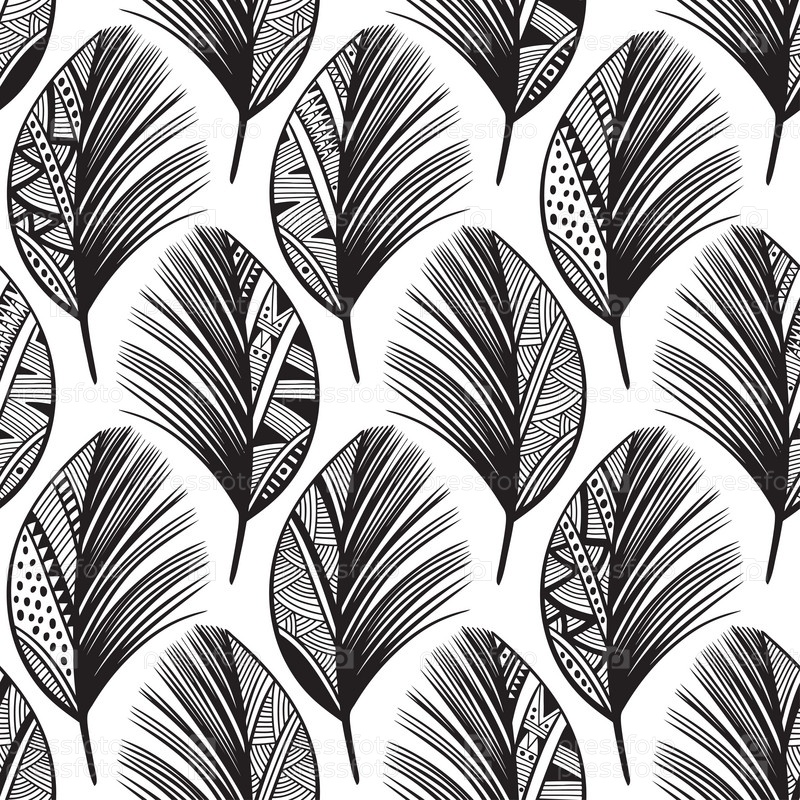 Бесшовный рисунок с нарисованными вручную перьями