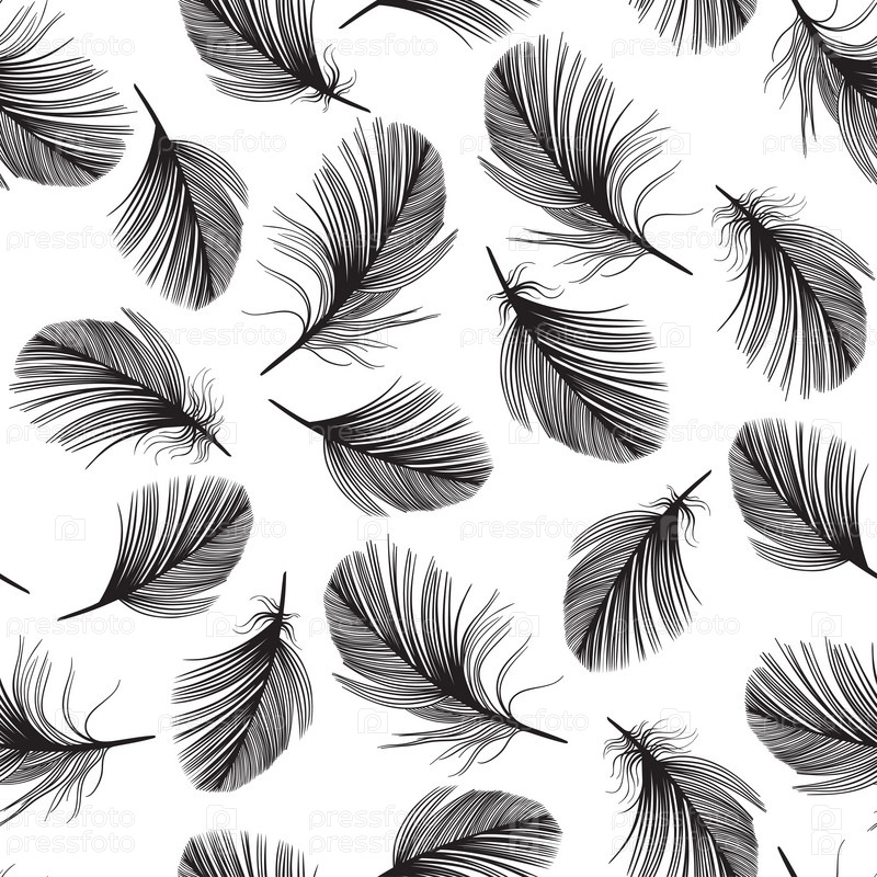 Бесшовный рисунок с нарисованными вручную перьями