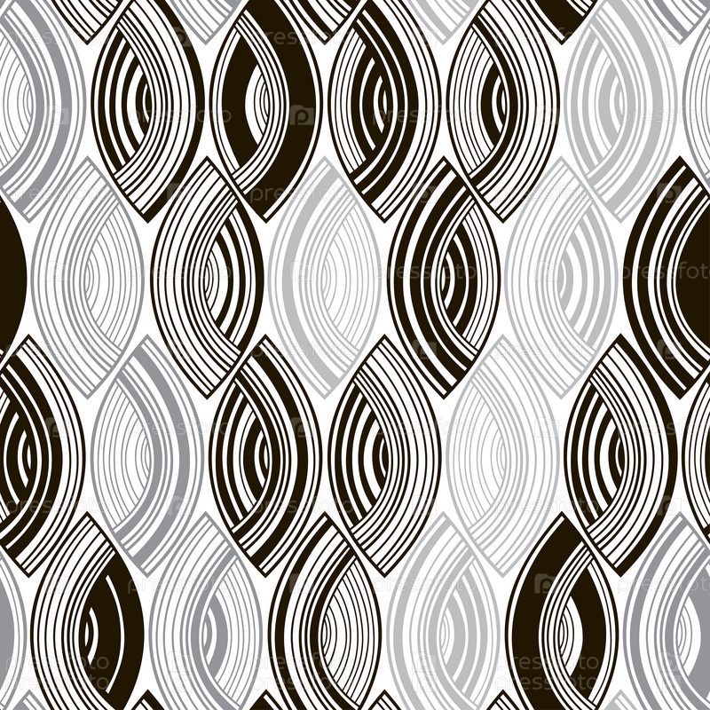 Бесшовный монохромный рисунок с полосатыми абстрактными листьями