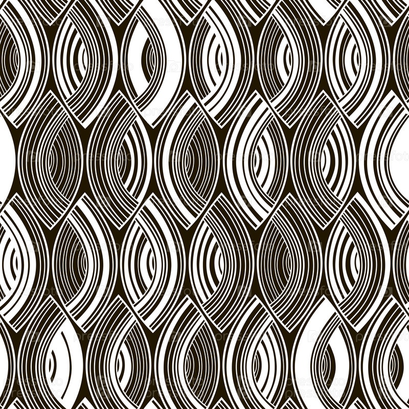 Бесшовный монохромный рисунок с полосатыми абстрактными листьями