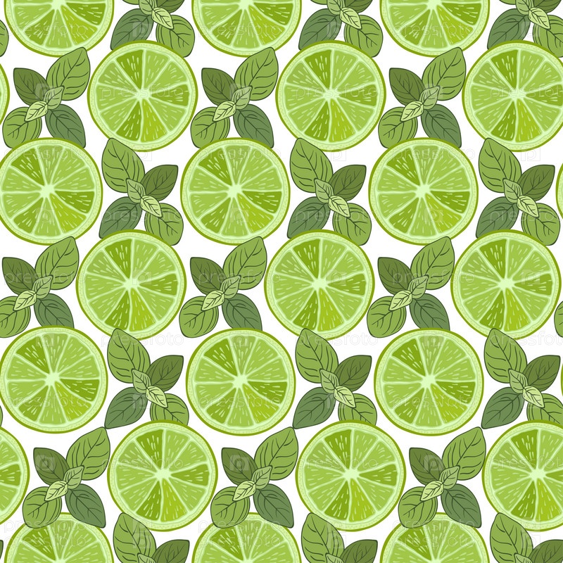 Бесшовный рисунок с кусочками лайма и мяты