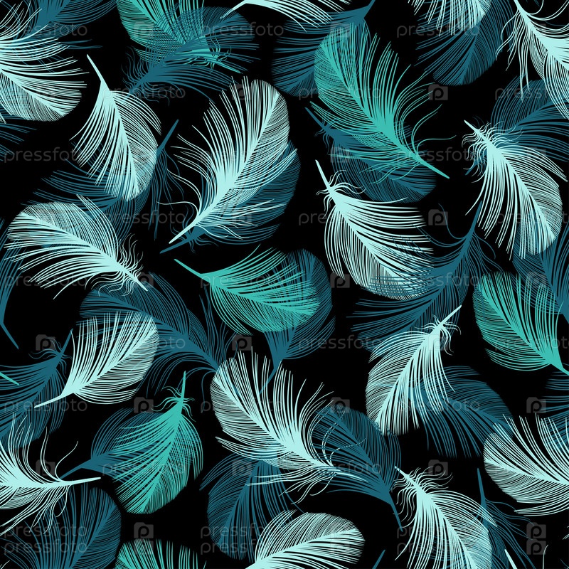 Бесшовный рисунок с нарисованными вручную перьями