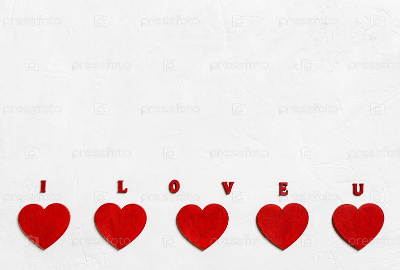 Граница дня святого валентина с красными сердцами и надписью я люблю тебя на белом фоне. День святого Валентина, день матери, концепция дня рождения. Скопируйте пространство, вид сверху