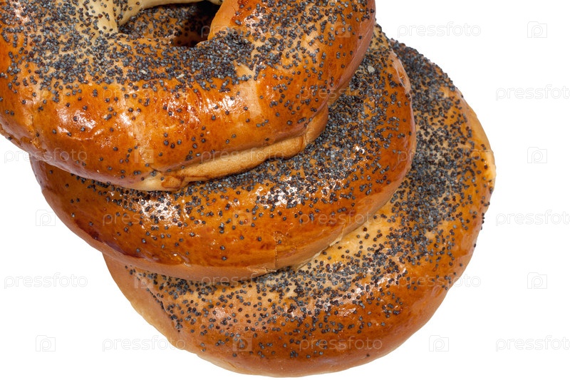 Баранки с маком на белом фоне