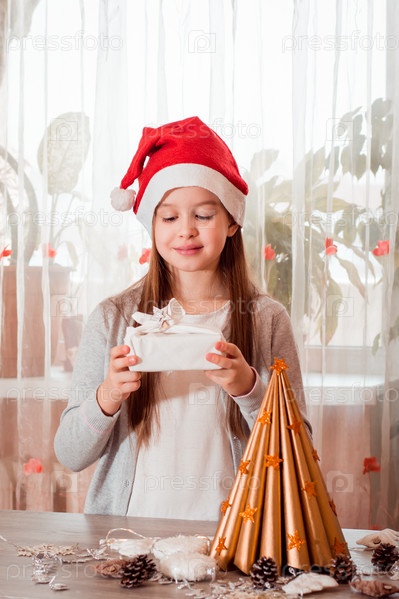 Рождество ручной работы. Девушка держит в руках эко-подарок фурошики. Ноль отходов