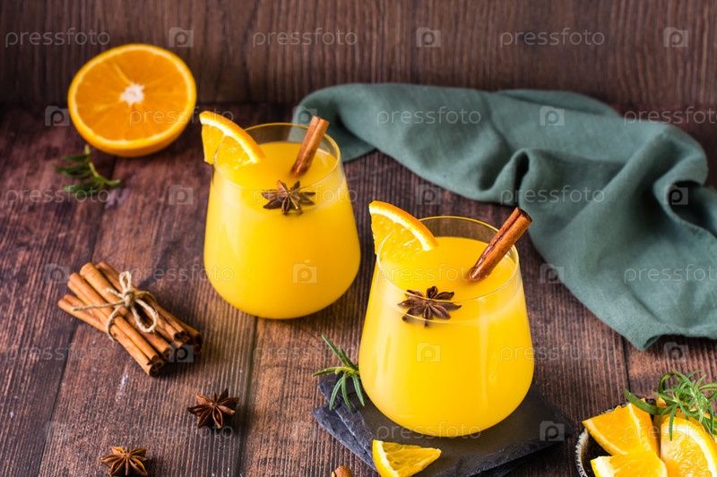 Домашний горячий апельсиновый грог с кардамоном и корицей в стаканах на столе