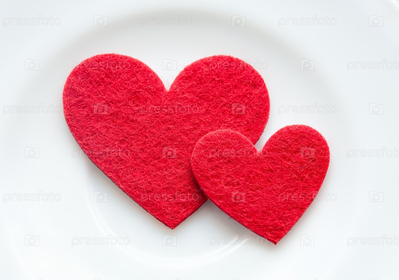 Красные сердца на тарелке крупным планом. День Святого Валентина