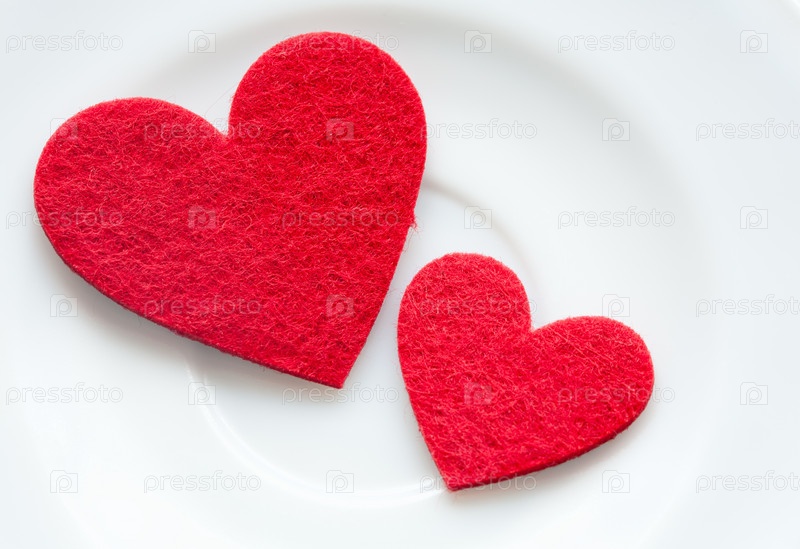 Красные сердца на тарелке крупным планом. День Святого Валентина