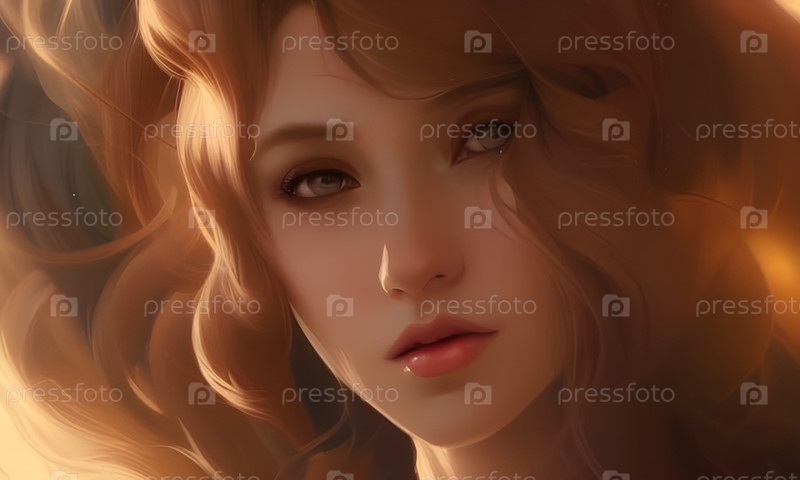 Арт портрет девушки с длинными волосами в стиле ар-нуво, фэнтези. Лицо крупным планом. Рисунок нейросети