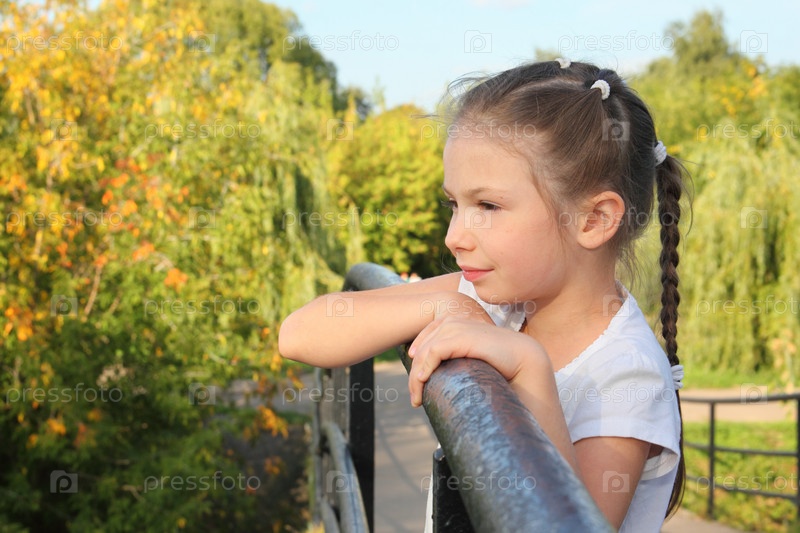 Маленькая девочка около перил на мосту