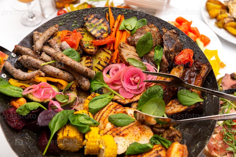 Ассорти из мяса и овощей, обжаренное на воке