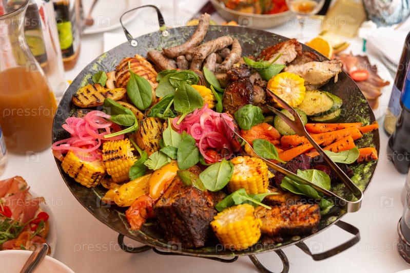 Ассорти из мяса и овощей, обжаренное на воке