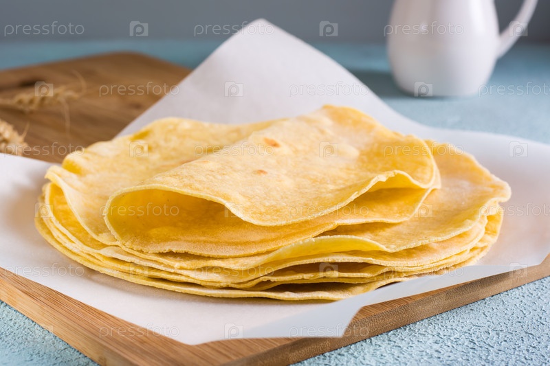 Домашние мексиканские кукурузные лепешки на деревянной доске на столе