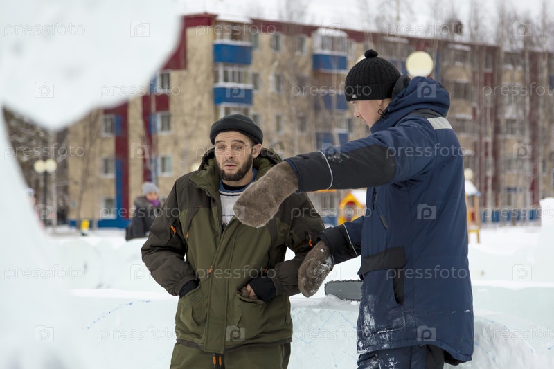 Двое рабочих на площадке ледового лагеря