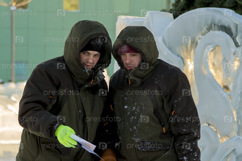 Двое рабочих на площадке ледового лагеря