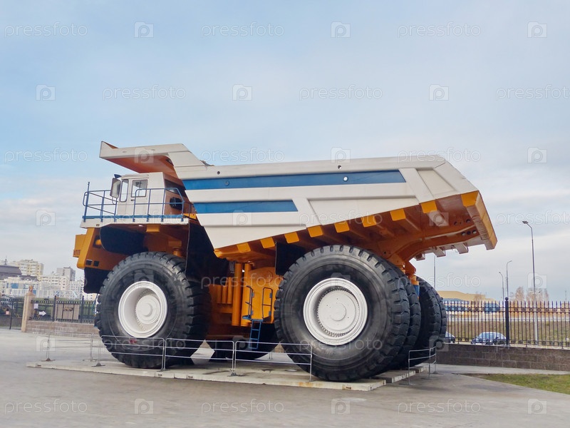 Верхняя Пышма, Россия, 14/10/2022: Музей автомобильной техники. Самосвал повышенной проходимости ультрасовременного класса БелАЗ-75600, 2005 г.в., 3500 л.с. при 1900 об/мин, Беларусь