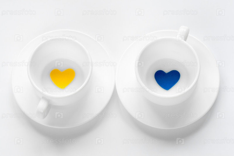 Пустые чашки и блюдца с сердечками