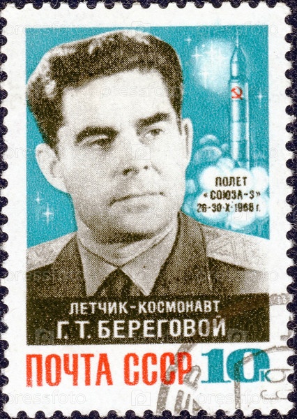 СССР-около 1968 года: Почтовая марка, изображен летчик-космонавт Георгий Береговой. Полет на космическом корабле "Союз-3" (26-30.10.1968)