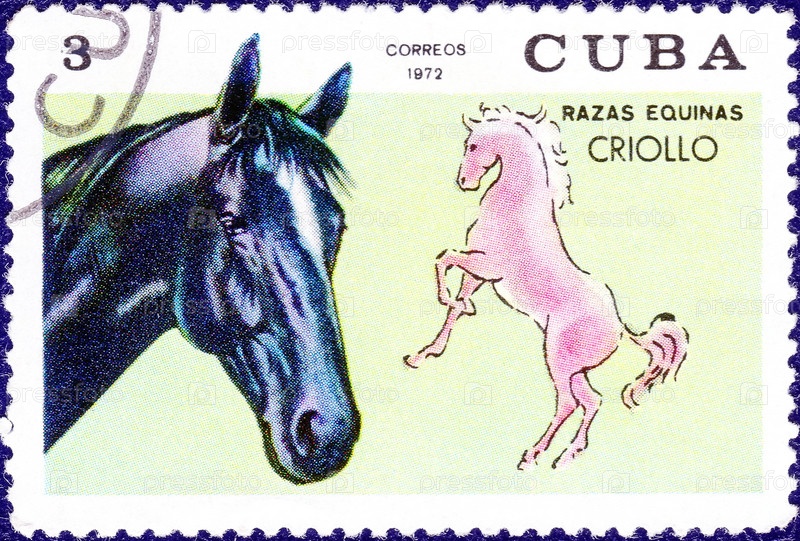 Куба, около 1972 года: почтовая марка с изображением лошади и надписью 'Razas Equinas. Criollo' из серии 'Конные породы'