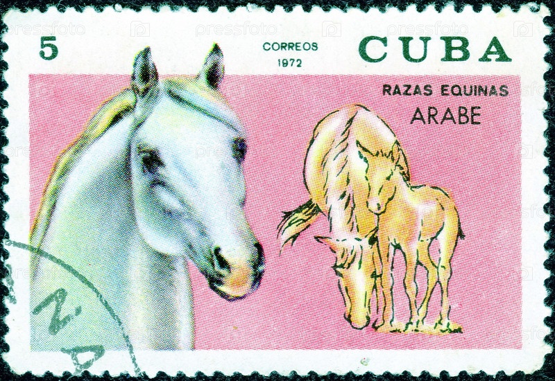 Куба, около 1972 года: почтовая марка с изображением лошади и надписью 'Razas Equinas. Arabe' из серии 'Конные породы'