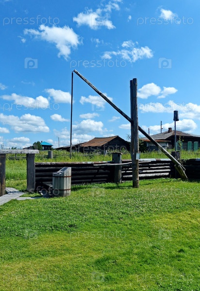 Колодезный журавль- это специальный вид подъемного механизма у колодца, называемого журавлем. Музей-заповедник деревянного зодчества и народного творчества. Нижняя Синячиха, Россия