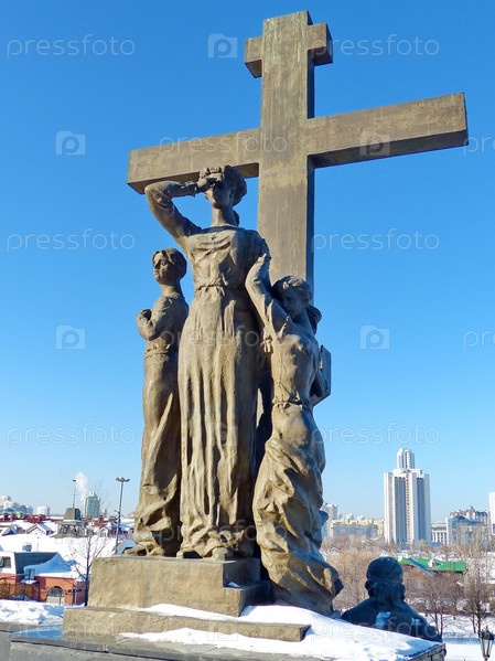 Фрагмент скульптурной композиции "Царские страстотерпцы" за несколько минут до казни", перед Храмом-на-Крови в честь Всех Святых. Екатеринбург, Россия