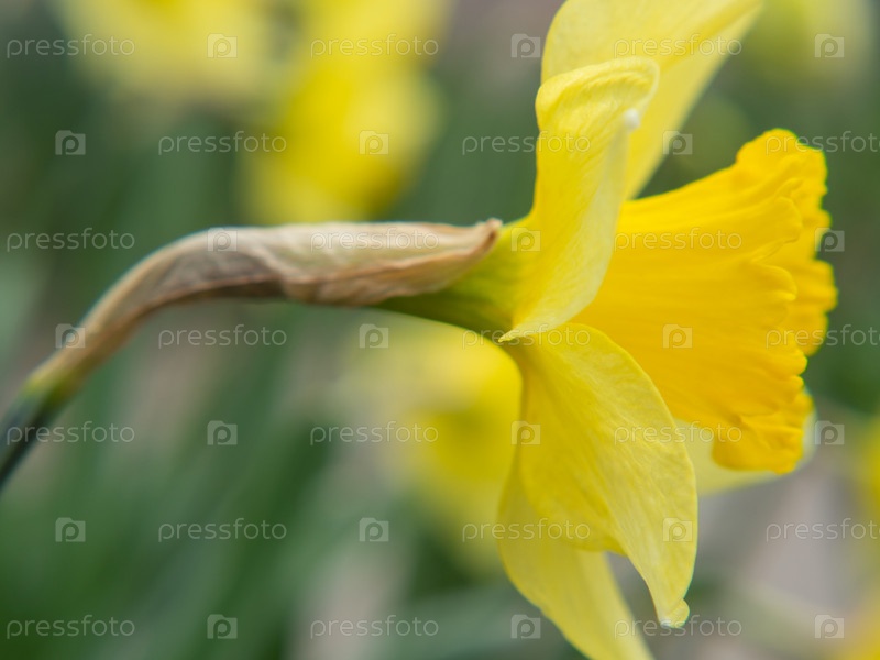 Желтый цветок нарцисса ранней весной в саду на цветущей клумбе