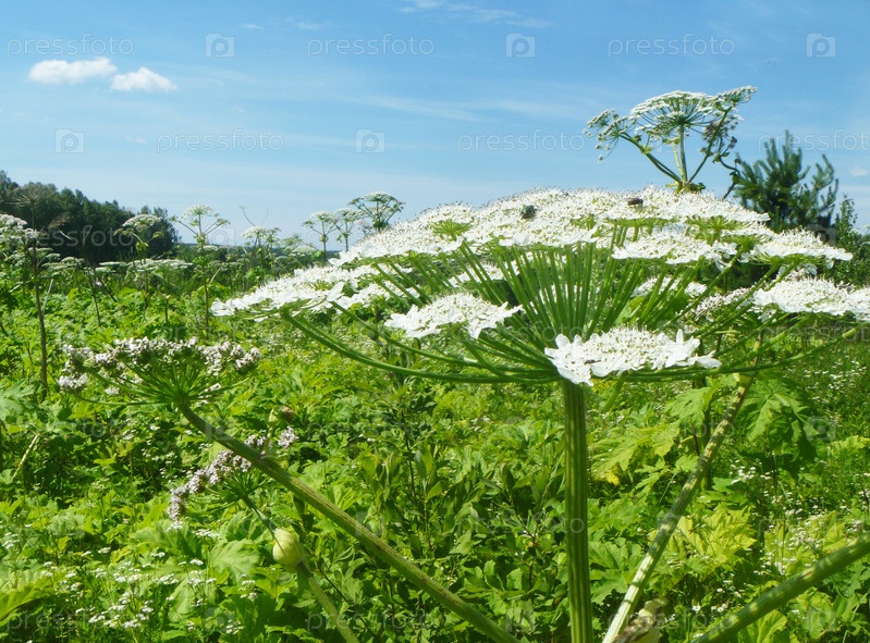 Цветок полевой травы на фоне голубого неба