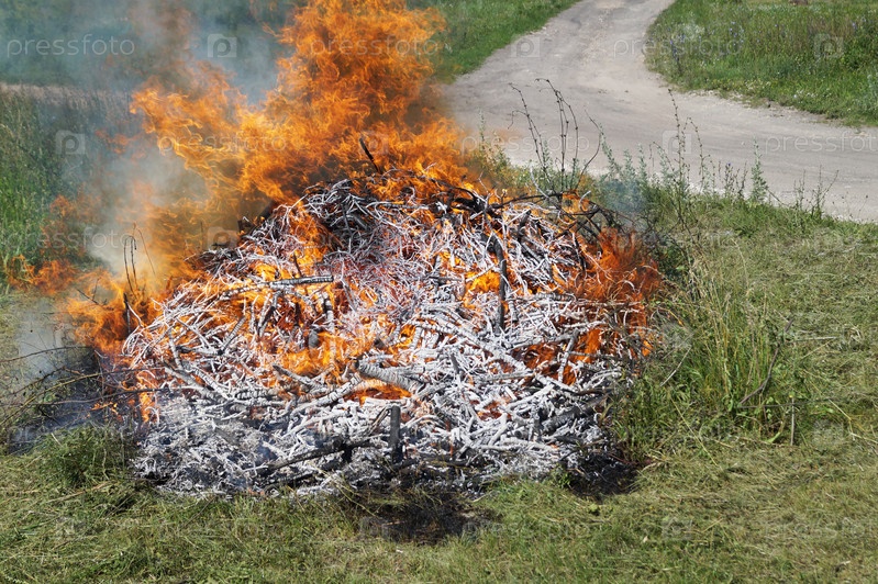 Костер на траве рядом дорого
