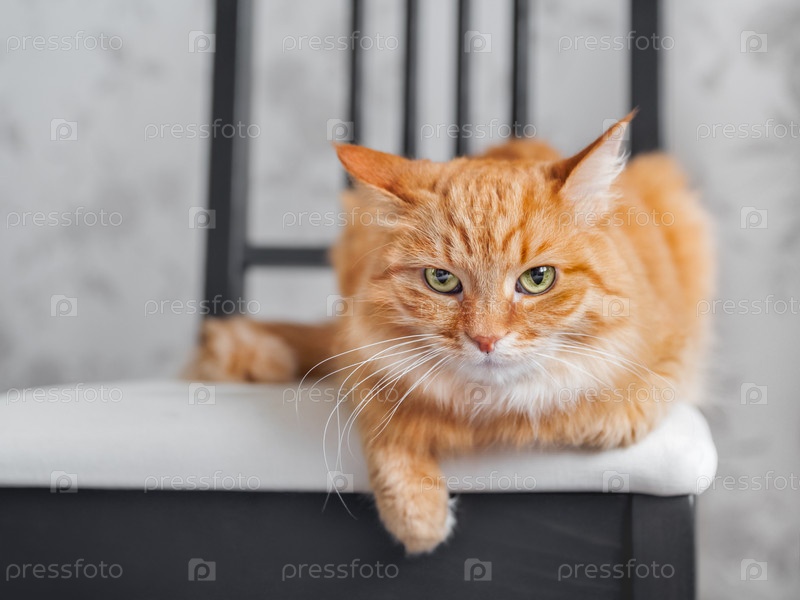Джингет лежит на черном стуле. Крупным планом портрет зеленоглазого милого питомца. Домашнее животное дома