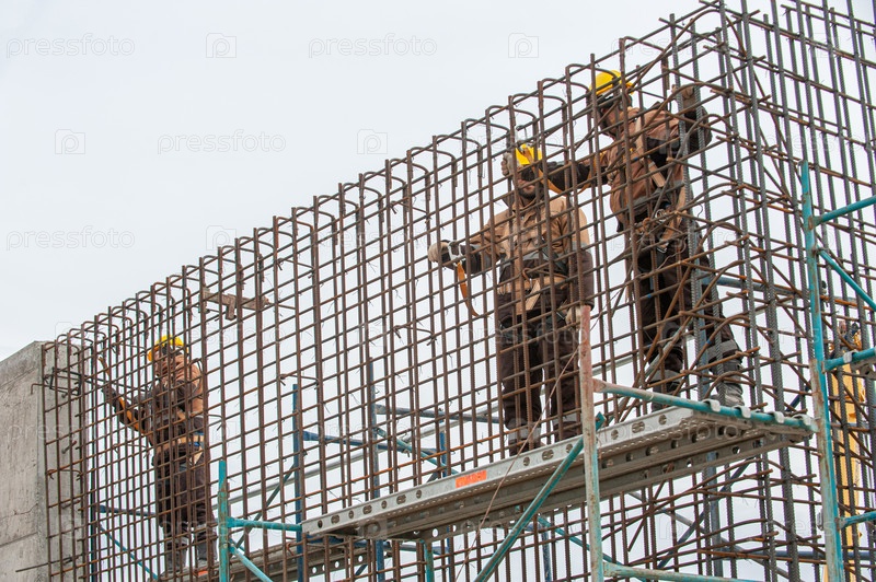 Мужчины, работающие на строительных лесах