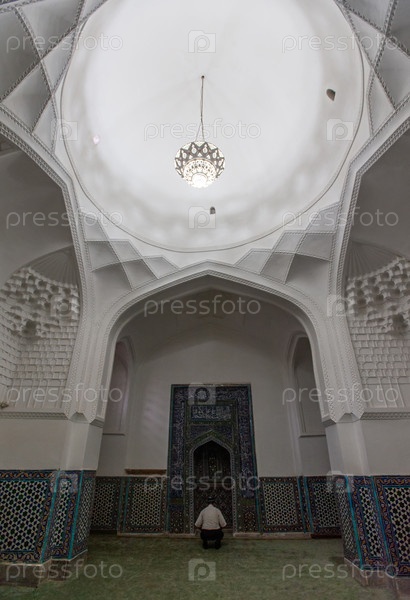Мужчина молится в мечети в Самарканде, Узбекистан