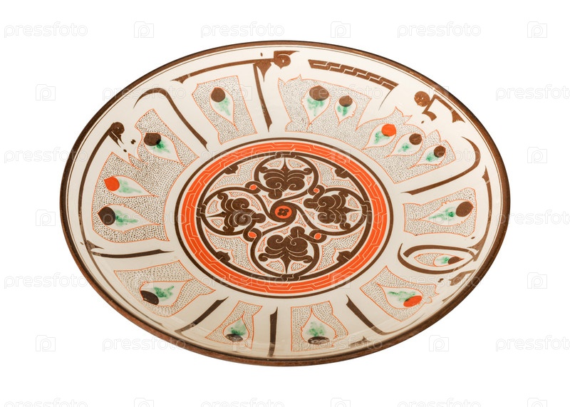 Винтажная восточная керамическая тарелка на белом фоне
