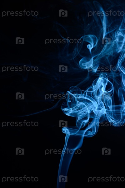 Вертикальный снимок синего табачного дыма на черном фоне