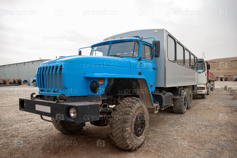 Вахтовый автобус для рабочих на промышленной стройке