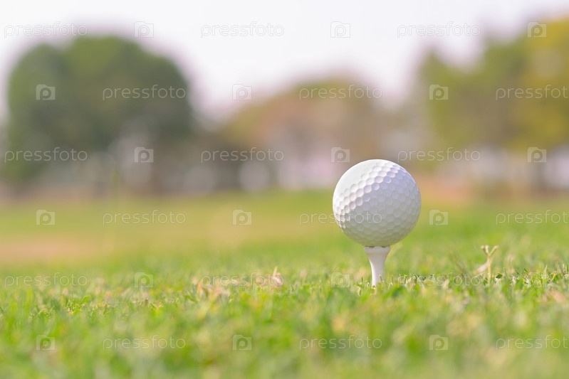 Крупный план белого мяча для гольфа на поле