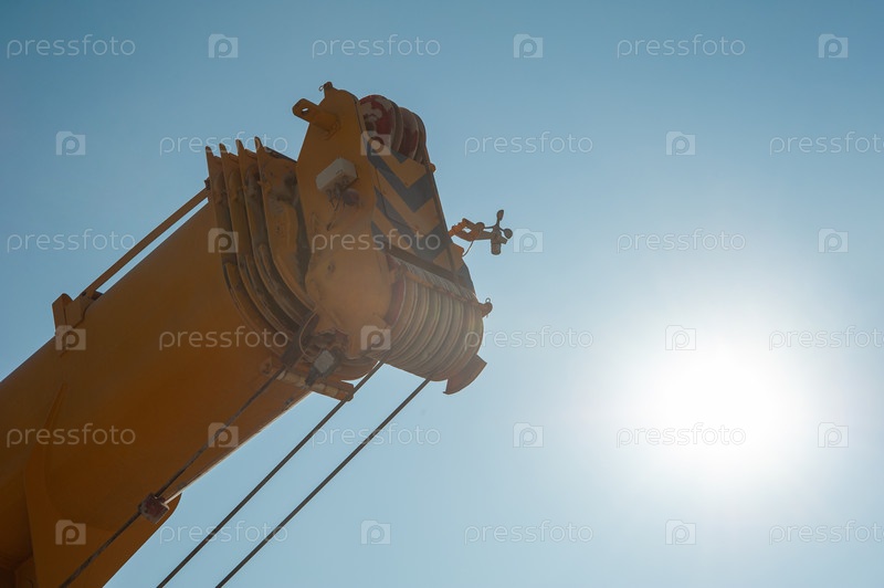Крупный план башни гусеничного крана на фоне солнечного неба