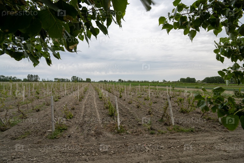 Вид на виноградники в сельской местности. Центральная Азия