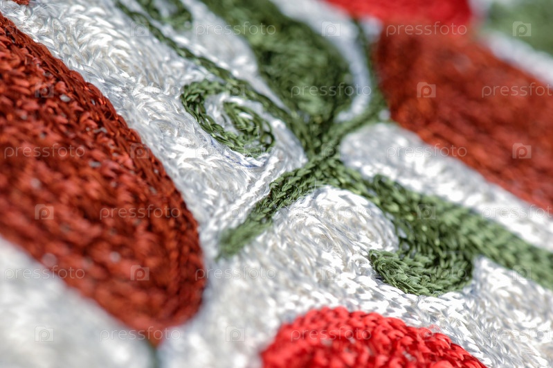 Крупный план национальных орнаментов и узоров Средней Азии на куске ткани