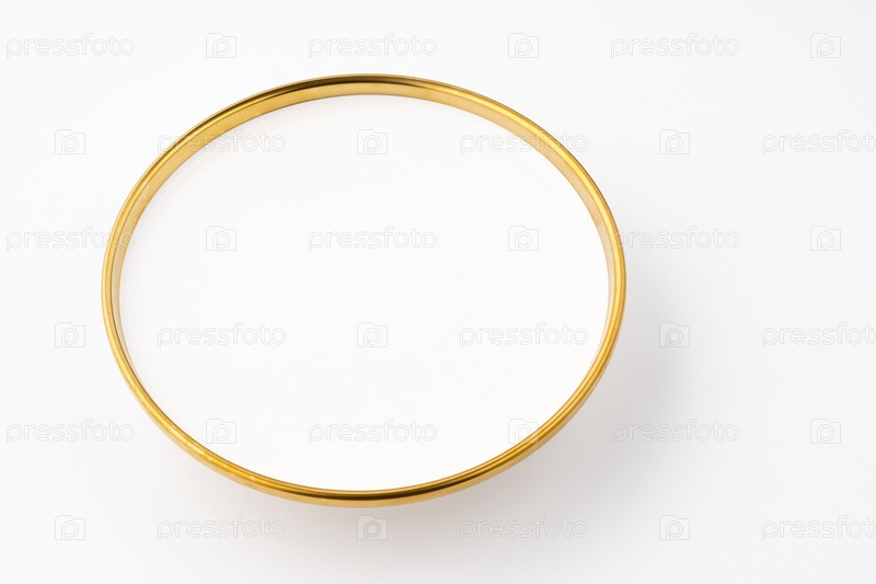Белая и коричневая керамическая тарелка на белом фоне. Вид сверху
