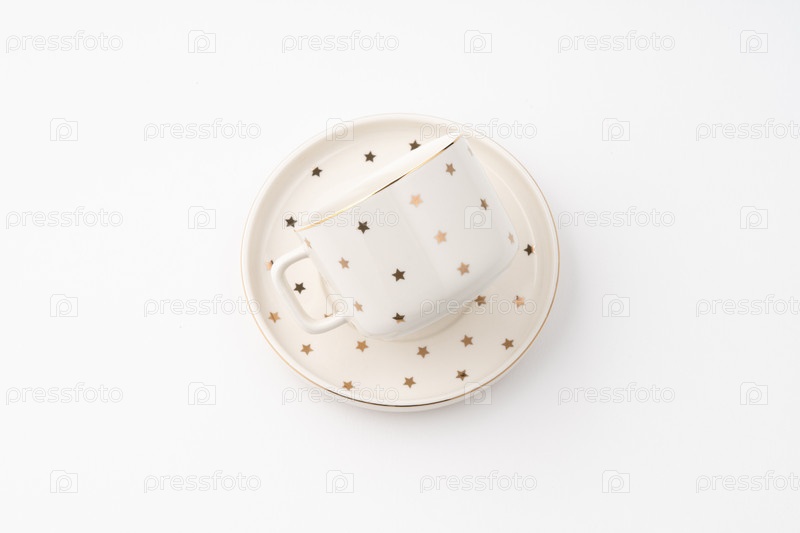 Керамическая чашка с блюдцем на белом фоне