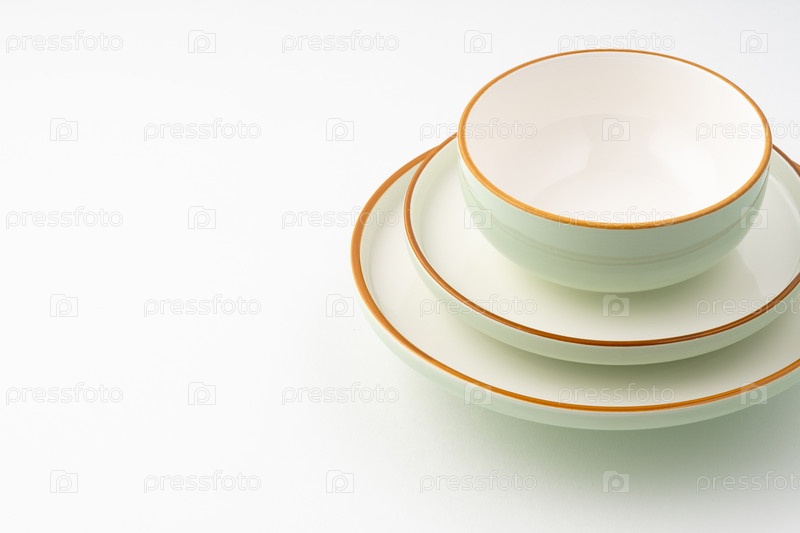 Набор керамической посуды на белом фоне