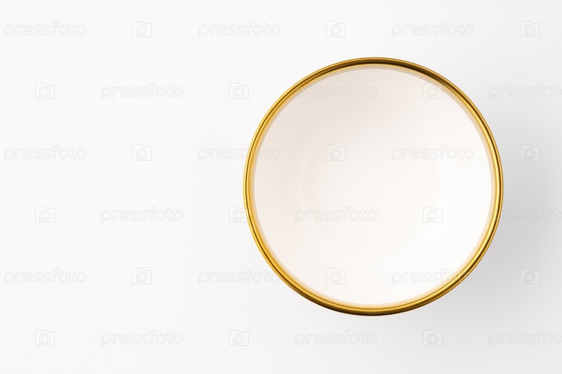 Белая и коричневая керамическая чаша на белом фоне. Вид сверху