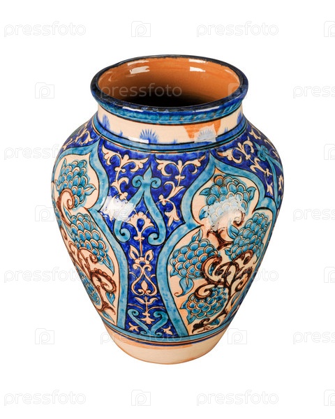 Старинная восточная керамическая ваза на белом фоне